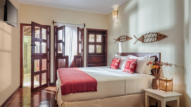 Standard: Cama de casal (ou até 03 camas de solteiro), Tv, Frigobar, ar-condicionado, cofre e ducha quente com terraço e/o varanda com vista para o nosso jardim tropical.