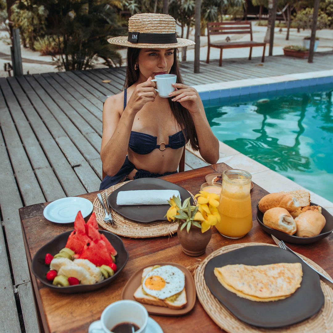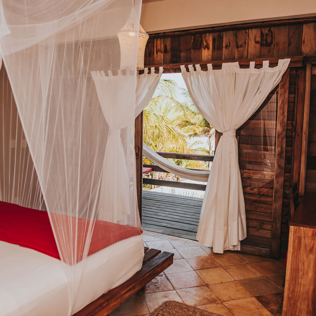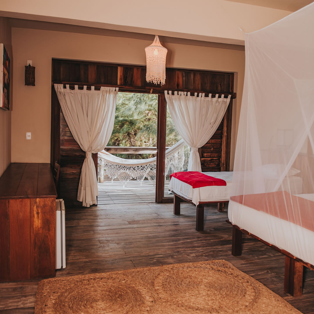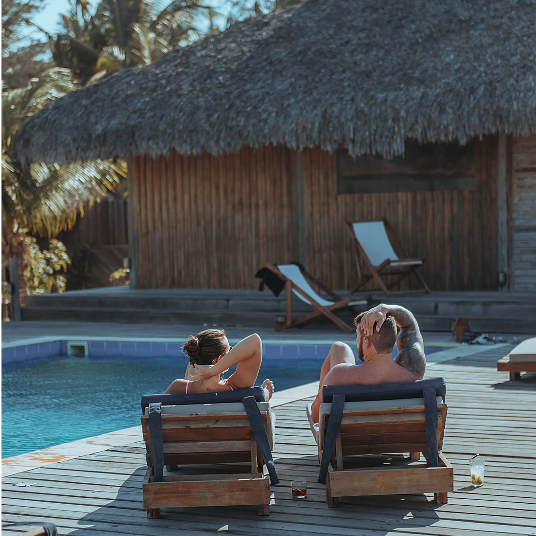 Dispõe de piscina de 23 metros de extensão na praia, deck e vários lounges, bem como acomodações rústicas, em estilo praiano. Cercados por um deck com vista do mar, os bangalôs apresentam decoração simples, com piso e paredes de madeira, frigobar e iluminação aconchegante. Os banheiros privativos incluem chuveiro de água quente e jardim com teto aberto. Um buffet de café da manhã é servido diariamente em uma área para refeições ao ar livre com vista do mar. O café inclui variedade de frutas frescas e sucos, granola caseira, tapioca, iogurte, bem como ovos.